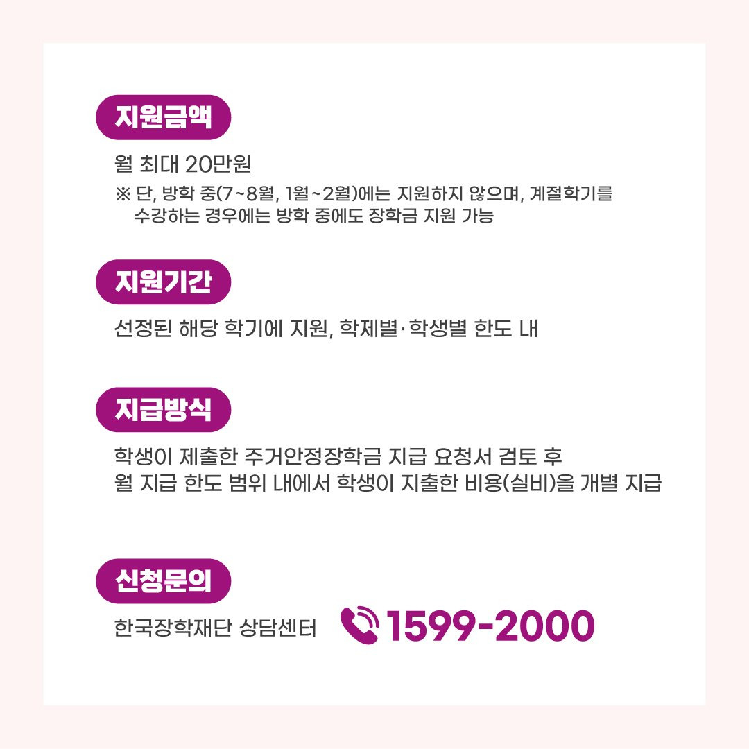 월 20만 원 한도 내 학생이 지출한 주거 관련 비용 포괄 지원