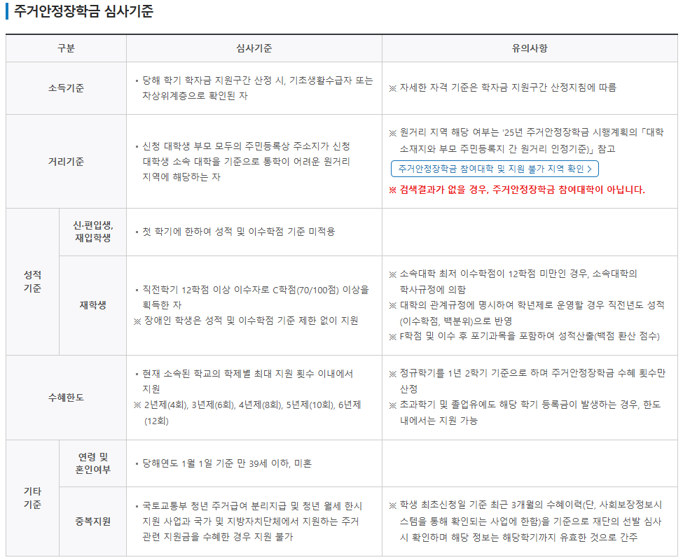 주거안정장학금은 다음과 같은 학생들을 대상으로 지원됩니다.